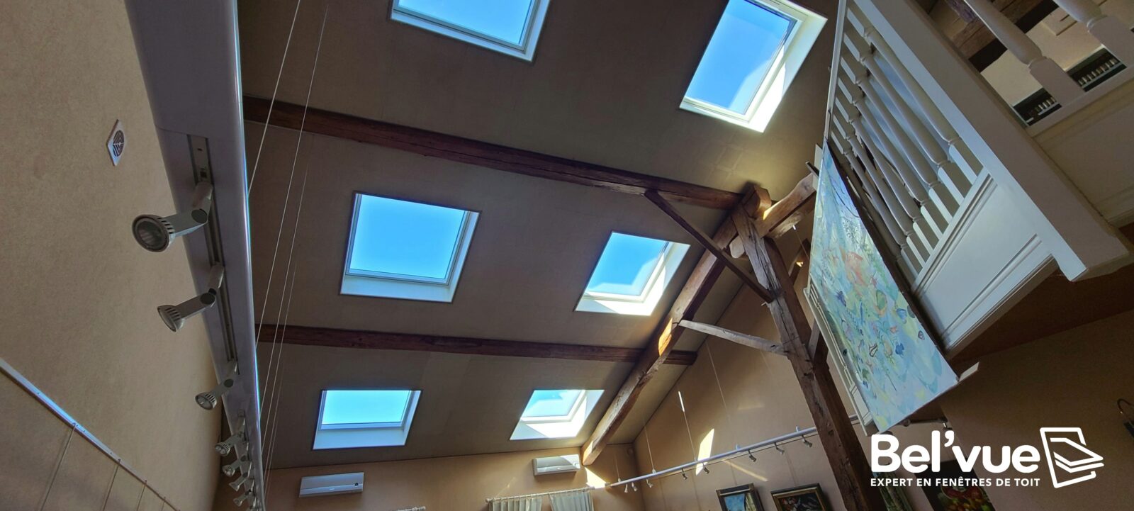 Fenêtres de toit dans une galerie d’art à Repaix – Quel artiste ne souhaiterait pas que sa création soit mise en avant de la plus belle des lumières ? Avec Bel’Vue, faites entrer la lumière naturelle dans vos pièces et embellissez votre quotidien. Retrouvez ci-dessous une image de ce chantier insolite de remplacement de fenêtres de toit dans l’ancienne demeure du peintre Gilles Fabre à Repaix.